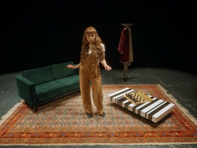 Спотот на визуелен начин ни го доближува судирот меѓу “уредната” и “хаотичната” авторка која на минималистички поставената мала сцена во МНТ извонредно комуницира со себеси, со камерата и секако со публиката.